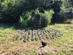 As we broke up the blind and brought our vehicles in, three new groups flew over. We were able to pull down another 7 for a TBC of 107! All were common crows except for about 5 fish crows. Note that we lost a lot (15 or so) of dead ones in the thick brush that you can see behind our blind.