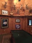 He did a very nice job in the interior of those old grain bins. Loved the pool table what a wonderful man cave with the deer mounts above. Your blind blends right in, looks good.