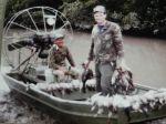 The crow season is all political, in my opinion the only time I would close it would be during nesting season and that is it. Here is a good photo of Dick & I shooting crows that fly across the Rio Grande River from Juarez Mexico to El Paso Texas on the other side of the river! That is the border fence I am at in the photo.