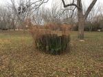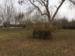 The setting up of my blind revealed a little problem. Now that it is winter, my dog fennel is no longer green. Imagine that!!?? In spite of using twice the usual amount, the concealment was reduced by half (1st picture). I made a quick trip to a different patch that wasn't quite dead and improved things a bit (2nd picture). All was ready.