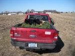 Well, not much happened. Larry got one and I missed a couple. Then it went silent. So, we left most of the equipment and blind and tried a “Run & Gun” over to the island in a nearby lake a couple of miles away, where we’ve often shot bandits. Again, Larry got one and I missed. After these very educated birds shut down—which only took a half hour—he drove me back to the morning position. I decided to wait for the feeding flock to return (?) and he left, having other matters to attend to. I wish he’d stayed. I had sporadic activity for the next three hours and knocked down nine more for a day’s total of eleven, counting Larry’s two. Had he stayed, we would have had more I’d wager because (a) he’s a better wing shooter and (b) the birds invariably came in groups of two to four which kept me way too busy. Never saw the larger group from yesterday. Perhaps these small groups were remnants. Sun was out. A beautiful day. Last photo is of the load being taken to the Acme Crow Recycling Facility, owned and operated by Wily E. Coyote.