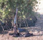 First one was a nice spiral, crashing down through the branches about 35 feet away. #2 took a real hard hit directly overhead with the no. 6s, folding into a “lawn dart” mode and crashing about 15 feet away with a grand thump on the still frozen ground. As I followed #2 downward, enjoying the sight, another bird immediately came into vision on the right and I swung over to take the shot. Brain said, "No shooty!" A red-tailed hawk seemingly had this bird on its radar for a moment and swooped away. So far, two shots, two bandits. Took a while for #3 to come by and I took three shots; first and second caused crow snow, third shot was too far, but by then I could see it was “going down in flames” about 100 yards distant into the woods. I’ll take it. The rest of the time, no action. They all remained in their hangout area cussing at me and would come no closer.