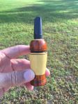 Photo 7 & 8 - Another marriage of wood (Basswood & Oak [?]) and craftsmanship by Daryal. While being very easy to blow, this call has a rich and robust sound.