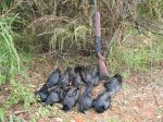 So being so excited to get to hunt next to a pecan grove i decided to bring another shooter  hoping that this would be my best hunt ever. 5 hours later & only 12 birds down it was a little disappointing.  The orchard had propane guns going as well as blasting sounds of crows, hawks & what sounds like electricity about 600 yards away.  I had a fantastic blind with cover above & behind, my partner couldn't sit still & spooked quite a few birds before they came within range. Most were very cautious & out of range. Used 2 greenhead flocked decoys, one was on the hotstick. Also put out 4 dead crows from a couple days ago. tried mouth calls, no calls & then electronics. None seemed to work better than any others.  It's just amazing that a crow can spot movement in the shadows with such good cover !        I think these were all local crows from around that area & were certainly on alert !     Perhaps some new migrants will show up soon.