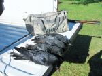 Got some payback across from the pecan orchard yesterday. Light winds & they were in the air. Took Demi's advice & moved a few hundred yards from the old blind. The new blind consisted of 4 cedar trees about 7 foot tall on the tree line overlooking the alfalfa field about 1/4 mile from the pecans. I think it was my best blind yet. Never got spotted. All i had to do is clip a few branches. The tree's were growing there. Ended up with 17 KIA. 3 in the pics were brought with for decoys.