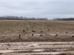 We where setup and waiting as the crows came off the roost and into the fields.  We had action pretty quick as crows where coming in before I even had my hand calls out or the FoxPro on.  Very quickly I realized our setup wasn't the best.  The crows where coming from West and the Northwest, which was right over our backs and coming in hot riding the wind into our position.  I also noticed the birds being extra cautious, (more on this later) as they J hooked in, we where presented with difficult shot opportunities, as the majority of them skirted us at 60 yards.  I managed to turn enough of them with the hand calls to get some decent shooting.  I spent 44 shells to bring down 20 crows, I struggled pretty bad this morning with the scatter gun but was able to get a double later in the morning.  Bill accounted for 12 of the KIA for a TBC of 32.