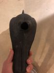 Picture #2: The hole you see is 1" in diameter and is where the spike was, that was made to stick the decoy in the ground. 1" hole makes it easier to retrieve the decoys from the tree, the extendo is about a 1/2" in diameter.