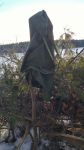 Here is my sun shade/stick. It's the nylon OD duffle bag I carry my decoys, thermos and a sweater or vest in, propped up on a stick found near my hunting location. Nothing to make, nothing extra to haul, blocks the sun effectively.