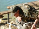 Hey Demi, since you and I both feed the song birds at home, here is a domestic duck taking bread right out of my mouth at a local park.