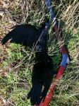 So on Tuesday morning I dropped my daughters off at school and decided to have a quick session before work. I got to my normal spot where I have already managed to call in a few and quickly set up my decoys. There is a permanent hide set up and I got in and waited. I made a few calls. Then suddenly a raven came in from my right, flew over the decoys at about 10m and then I shouldered the old O/U and swung through him and pulled the trigger. Great was my joy when he exploded in a bunch of feathers. I was on the scoreboard! About 2 minutes later another came in and I shot at about 25m and hit him. Not dead but falling to the ground. I got out of the hide and killed it.