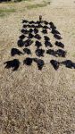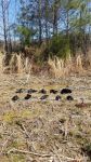 This was my last hunt of this season. Apologies for taking so long to post! This was a hunt at a deer camp about 1.5 hrs south of me. I know one of the members and he said there were always lots of crows in this certain field. I drove down one afternoon to check it out and set-up my blind. Unfortunately, the field I wanted to hunt was inaccessible due to heavy rain the day before. And I was not about to press my luck crossing a raging creek in the middle of nowhere, by myself. So, I found a spot on my side of the creek and went to work. This was a corn field that they never harvested- just cut it down and left it. So there was plenty of food there. I hunted til about noon and got 10. I had one double and one surprise scotch double. I set up in a narrow strip of trees/brush that had grown up along a small drainage ditch in the middle of a large field. The scotch double came when a big bunch of crows lifted off the field I was supposed to be hunting and a group of them flew right over me. I kept expecting them to turn over my decoys and downed birds but they never did. They just flew directly over my blind. When I realized they were not going to turn I threw-up my gun and fired at the last second. There were several of them very close together but it never crossed my mind that I may have hit more than one. They were so far over my head that the only reason I knew I hit one was by hearing it crashing thru the brush behind my blind. When I got out of the blind awhile later I was shocked to see 2 down crows within a few feet of each other. Does it count when it happens this way?? I hope to get at that other field next season!