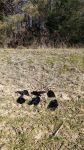 This was hunt near my house on educated crows. So I wasn't expecting great results... I hunted in a new spot. I was in a wood line with a berm about 15 ft in front of me and that overlooking a planted wheat field. I set my blind up (in the background behind the crows and over the berm) the afternoon before and left my decoy bag in the woods so I didn't have to carry it in the next morning. I grabbed it the next morning before daylight and started putting out decoys by flashlight. I had 2 or 3 decoys out when I felt something scratching on my hand. I shone my light on it and discovered a mouse trying to crawl up my hand! I wasn't expecting a rodent so it startled me pretty good. I also had a large hawk land next to one of my dead crows. I was surprised how much arm waving and hollering it took to get it to finally leave. I quit at noon and with how educated I knew these crows were, I was happy with 6.